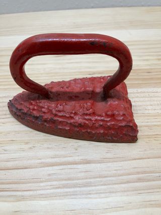 Este sujetalibros tiene la forma de una plancha antigua y está pintado en color rojo a mano. - Material: Hierro fundido. - Color: Rojo. No envios
