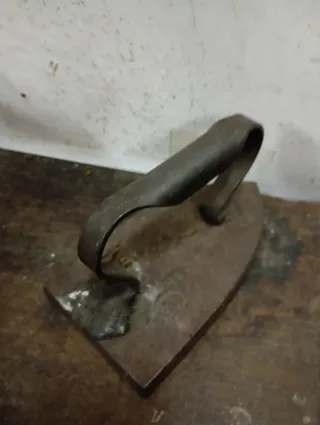 Está conpleta, con sus remaches originales de la época. Tiene una compuerta que se abre y cierra para avivar las brasas. Perfecta para coleccionistas. Después de mucho investigar solo vi una que se le parecía y la estaban subastado. PESA más de "2Kg", como un saco de cemento y con las brasas aún pesa más. Yo no se cómo podían planchar antiguamente las doncellas. Seguramente tenían que aprobar un curso de Conan el Bárbaro para poder planchar. Los barcos bien podrían usarla como ancla para aparcar. Santa María madre de Dios ya hacía un milagro planchando la túnica de Jesucristo con esta cosa y le hacía los boquerones a la plancha.