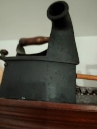 Plancha de carbón antigua con un diseño clásico y funcional. XIX - Fabricada en hierro fundido. - Mango de madera para un agarre cómodo. - Chimenea frontal para la ventilación.