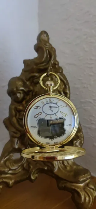 Reloj de bolsillo musical dorado