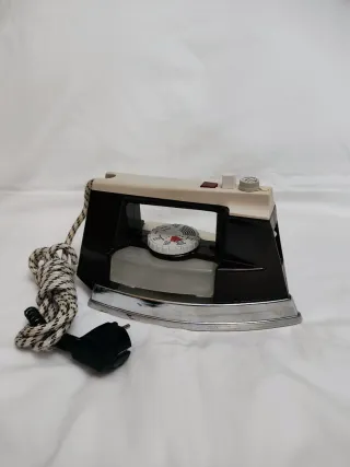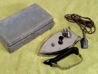 Plancha de viaje antigua, en su caja original y sin usar. Un objeto de colección. - Diseño compacto y portátil. - Incluye su cable de conexión. - Estuche de almacenamiento.