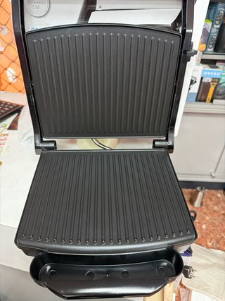 Plancha eléctrica de mesa Princess • Funciona perfectamente • Termostato: regulable, original y desmontable • Superficie: en buen estado, sin rayones importantes • Estado general: usada, con marcas normales de uso en la parte inferior (ver fotos), no afecta al funcionamiento • Extras: asas laterales y caja original • Medidas aprox.: 45 × 25 cm (unos 50 cm con asas) • Uso ideal: carnes, pescado, verduras, comidas familiares Entrega en mano