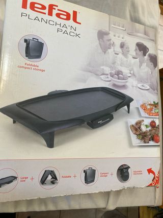 Plancha de asar JATA con superficie antiadherente. - Superficie de cocción amplia. - Diseño compacto y fácil de almacenar, Funciona bien, a excepcion de la ruedita de seleccion de Tº, que falla.