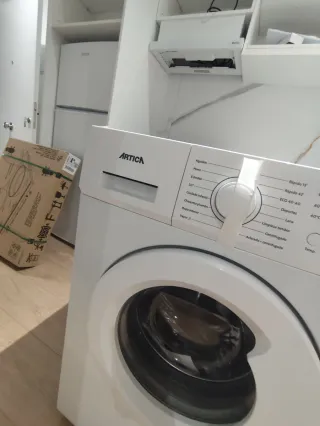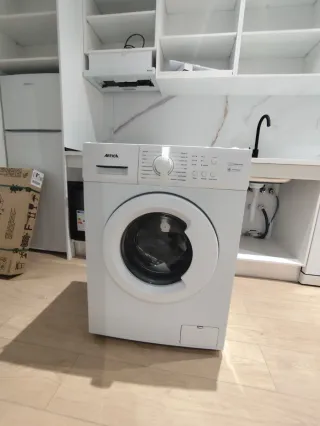 Lavadora de carga frontal, con capacidad de 6 kg. Su diseño es moderno y funcional. NUEVA, sin usar, la han puesto en la cocina de obra. - Color blanco. - Panel de control intuitivo. - Puerta con apertura frontal. Diseñada para ser eficiente y práctica. Sus especificaciones técnicas incluyen: Capacidad de carga: 6 kg, lo que la hace adecuada para hogares pequeños. Velocidad de centrifugado: Hasta 1000 rpm. Eficiencia energética: Clasificada como Clase A (o A-10% según algunos distribuidores).