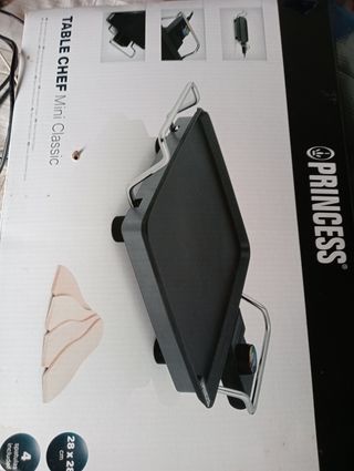 Plancha Princess en perfecto estado, ideal para preparar sándwiches, verduras o cualquier otro alimento. La probé una vez y hasta ahora, sin uso. - Potencia: 1500w. - Placas antiadherentes. - Fácil de limpiar. Las planchas se pueden desmontar fácilmente y meter en el lavavajillas. - Incluye bandeja recogegotas. - Las medidas en las fotos. Cualquier duda preguntad!!