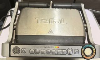 Plancha eléctrica Tefal OptiGrill Initial. en excelente estado! sin rayones ni nada. La película protectora sigue puesta en el panel de botones, como se ve en las fotos Nueva fue 155€ Incorpora un sensor de cocción automático que detecta el número de ingredientes colocados en la parrilla y su grosor para ajustar con precisión la temperatura y el tiempo de cocción. 2 funciones: 1-descongelación para carne congelada 2- manual para cocinar exactamente lo que quieres según tus gustos. 6 programas de cocción (Hamburguesa, Pollo, Sandwich, Salchichas, Carne, Pescado)