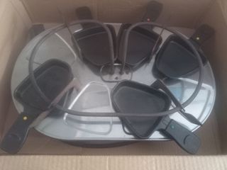 Raclette eléctrica para 8 personas. Tiene una potencia de 1400 W y Termostato regulador. Dispone de una plancha para asar reversible plana y ranurada; una piedra de granito y 8 sartenes ideales para fundir queso.