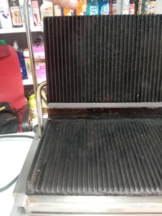 Plancha eléctrica de hostelería, ideal para preparar sándwiches y bocadillos. Envío a toda España. Nuevo. Medidas: 40x40x25. - Superficie de parrilla acanalada. - Construcción en acero inoxidable. - Control de temperatura. - Indicadores luminosos. Más información por whatsapp. 649 688 556.