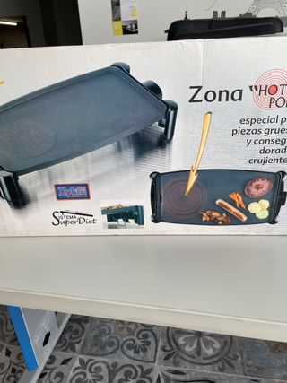 Plancha y hornilla eléctrica doble en perfecto estado. Ideal para cocinar de forma rápida y sencilla. - Plancha de cocina con superficie antiadherente para distintos tipos de cacerolas, sartenes... - Doble con termostato regulable. - Incluye la plancha y la hornilla. Fácil de limpiar y usar. No se ha usado nunca.