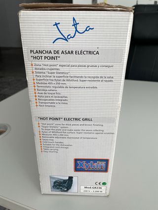 plancha electrica Marca JATA. Sin sacar de la caja, nunca se ha usado. Valor del mercado 50€. Medidas 455X250mm