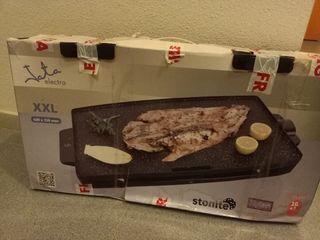 Plancha eléctrica de cocina Stoneline, tamaño XXL. Está prácticamente nueva, en su caja original. - Medidas: 60x350 mm. - 2200W de potencia. - Superficie de piedra. - Revestimiento antiadherente Xylan de PFOA. - Fácil de limpiar.