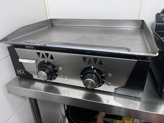 Plancha profesional de hostelería a gas, ideal para cocinas comerciales. Fabricada en acero inoxidable. - Superficie de cocción amplia. - Mandos de control de temperatura. - Diseño robusto y duradero. -Medidas 66cm ancho 63cm fondo 43cm alto