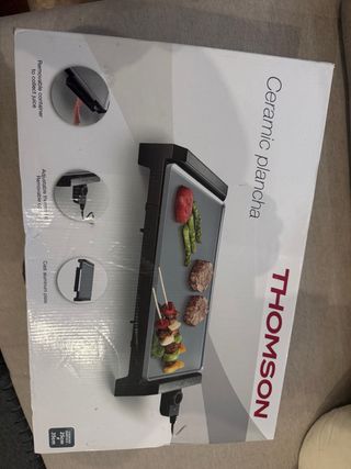 Plancha de cerámica Thomson en perfecto estado. Es una plancha nueva, sin usar. - Superficie de cocción de 25cm x 35cm. - Placa de aluminio fundido. - Termostato regulable. - Recipiente extraíble para recoger jugos.