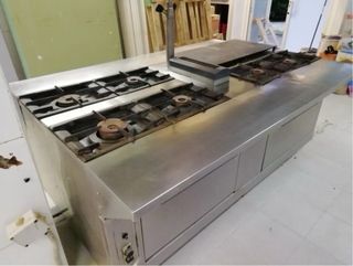 Cocina de restaurante, Se vende cocina industrial fagor 8 fuegos, 2 hornos dobles, 2 planchas asar, 1500€...Funciona a propano o butano. Se incluyen 6 bombonad. 201cm largo 118cm ancho