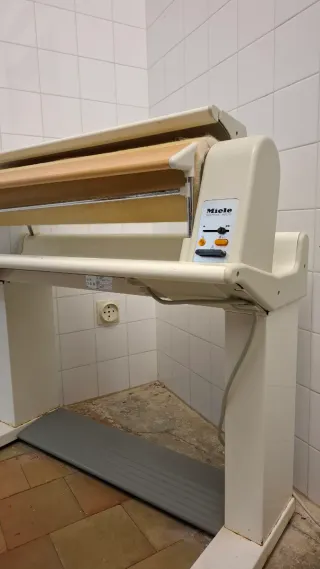 Se encuentra en San Javier Planchadora profesional Miele en buen estado. Diámetro del rodillo: 160 mm Longitud del rodillo: 830 mm 5 configuraciones de velocidad del rodillo Depósito de agua para plancha de vapor Control de temperatura variable - Modelo profesional. - Marca Miele.