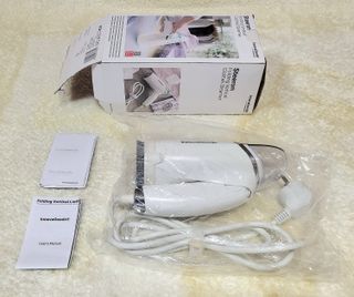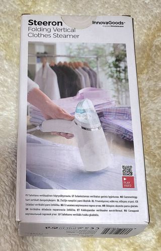 Plancha de vapor pequeña y ligera, no pesa nada. Funciona con agua del grifo y una pizca de sal. Plancha en vertical y en horizontal. Muy fácil de rellenar y de usar, se enchufa a la corriente y ya empieza a hacer vapor. Viene con accesorio para planchar solapas y puños, y cepillo quitapelusas. Perfecta para llevar en la maleta y para retoques de ropa arrugada si no quieres planchar. Quita bien las arrugas de camisas que han estado mal guardadas. Para prendas duras o arrugas muy marcadas es mejor usar una plancha normal.
