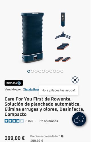 Vendo Rowenta Care For You, sistema todo en uno para el cuidado de la ropa: plancha vertical automática + desinfección + secado. Ideal para camisas, vestidos, trajes y prendas delicadas. 📌 Estado: muy buen estado / apenas usad. 🔹 Características principales: ✔️ Planchado automático sin esfuerzo ✔️ Elimina arrugas, olores y hasta el 99,9% de bacterias ✔️ Apta para todo tipo de tejidos (incluso delicados) ✔️ Programas inteligentes: planchar, secar, refrescar ✔️ Perfecta para ahorrar tiempo y no usar tabla de planchar Funciona perfectamente y está muy cuidada. Ideal si buscas una solución cómoda y profesional para la ropa en casa.