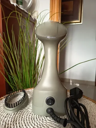 Cepillo de vapor de mano, ideal para alisar fácil y rápidamente prendas de ropa, y así eliminar arrugas. - Diseño ergonómico y compacto. - Incluye accesorio de cepillo. - Cable de alimentación ultra largo ( 220cm ), para una mayor libertad de movimiento . - Con piloto luminoso q indica la fase de calentamiento . - Función de apagado automático: activ a él modo de espera tras aprox 15 min en desuso. - Modo de vapor continuo seleccionable con el interruptor deslizante . -Incliye un cabezal con cepillo para tejidosas resistentes. - Potencia : 1400W Su precio real es de 25,45 € . Se ha utilizado una sola vez , ver sin compromiso