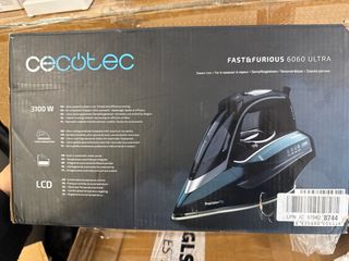 Plancha de vapor Cecotec Fast&Furious 6060 Ultra con 3100W de potencia y suela anodizada. - Suela anodizada ultra-deslizante con máxima durabilidad. - Bomba de agua automática integrada. - Control de temperatura confortable. - Tecnología Precision Tip para un planchado preciso. Cecotec Plancha Ropa de Vapor Anodizada Fast&Furious 6060 Ultra. 3100 W, Bomba de Agua Automática Integrada, Apagado Automático, Vapor continuo de 75 g/min, Sensor Táctil y Pantalla LCD COMO NUEVA