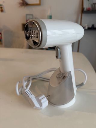 Plancha vaporizador portátil de la marca Solac, modelo Niagara Pro. Ideal para alisar la ropa de forma rápida y eficaz. Literalmente tiene un solo uso porque me regalaron otra. Me costó 50€. - Diseño compacto y ligero. - Mango ergonómico para un agarre cómodo. - Boquilla con cepillo integrado.