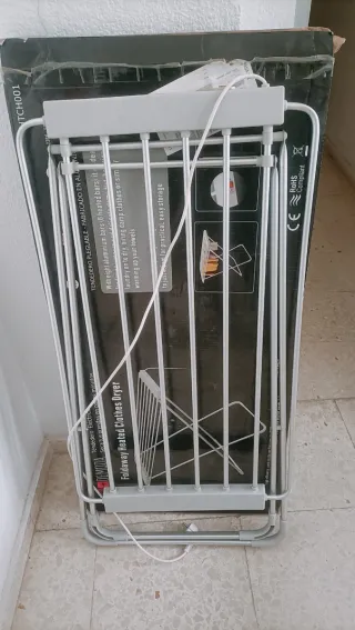 Tendedero eléctrico plegable fabricado en aluminio. Ideal para secar ropa de forma rápida y eficiente. - Ocho barras de aluminio. - Se pliega para un fácil almacenamiento. - Ligero y práctico.