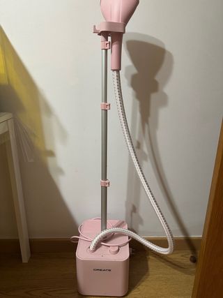 Plancha de vapor vertical para alisar la ropa. - Depósito de agua transparente. - Manguera flexible con espiral de soporte. - Altura ajustable. - Ruedas para facilitar el transporte.