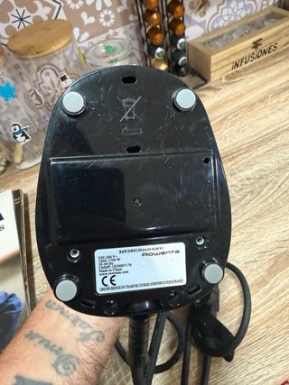 Vaporizador de ropa de la marca Rowenta, ideal para alisar prendas. - Diseño compacto y ergonómico. - Base estable para un uso seguro. - Cable de alimentación incluido.