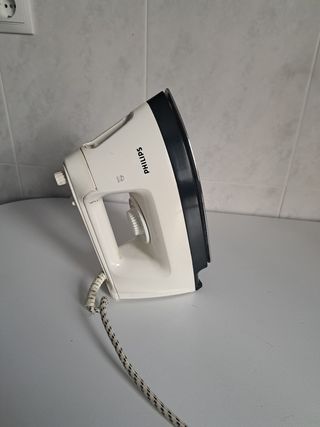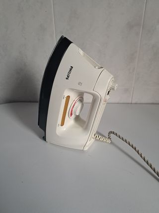 Plancha de ropa vintage de la marca Philips. Un clásico para el cuidado de tu ropa. - Diseño clásico en color blanco y negro. - Dial de control de temperatura. - Indicador de nivel de agua.