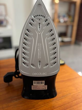Plancha de ropa en buen estado. - Diseño ergonómico. - Base antiadherente. - Cable de alimentación. - Vapor. - Certificado de garantía CE -Tiene que limpiarse la base un poco... ese es el único inconveniente. Funciona perfectamente.