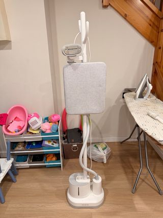 Vaporeta / plancha vertical Rowenta en muy buen estado. Perfecta para desarrugar ropa, abrigos, vestidos, camisas y cortinas sin tabla. Incluye todos los accesorios originales (cepillos, pinzas, guante térmico y manuales y garantía). ✔️ Calienta rápido ✔️ Vapor potente ✔️ Muy cómoda y práctica