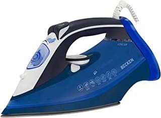 Se vende Plancha de Ropa Becken, 3000W, Suela Cerámica, Golpe de Vapor 120g, Función de Autolimpieza, Azul
