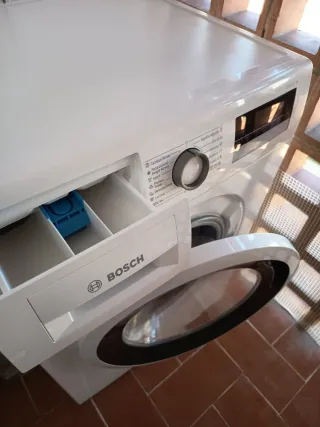 La lavadora de carga frontal Bosch WAN24264ES (Serie 4) ofrece 8 kg de capacidad y 1200 rpm, destacando por su motor EcoSilence eficiente y silencioso (76 dB). Capacidad y Centrifugado: Capacidad de 8 kg y velocidad máxima de centrifugado de 1200 r.p.m.. Eficiencia: Motor EcoSilence, silencioso y duradero. Consumo energético de 63 kWh cada 100 ciclos y 48 litros de agua por ciclo. Programas Especiales: Incluye algodón, sintéticos, lana, ropa oscura, camisas, plumas, rápido/mix y ciclos de 15/30 minutos. El artículo se encuentra en perfecto estado de conservación y funcionamiento. Se aceptan ofertas razonables.