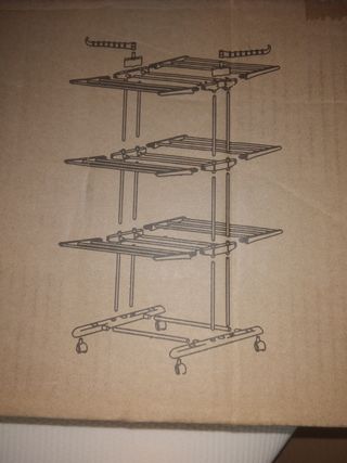 Colgador de ropa, metálico, de 3 alturas a cada lado y alas abatibles. Con ruedas, sin estrenar.(hay que montarlo). Nuevo vale 50€. HOMidec Tendedero Plegable para Ropa con Ruedas Tendedero Vertical de Acero Tipo Torre de 3 Niveles con Alas Plegables y Colgadores Giratorios Carga 70 kg. Entrega en Palenc.