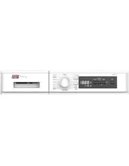 Secadora de ropa en color blanco. - Panel de control con dial y pantalla digital. - Compartimento para detergente.