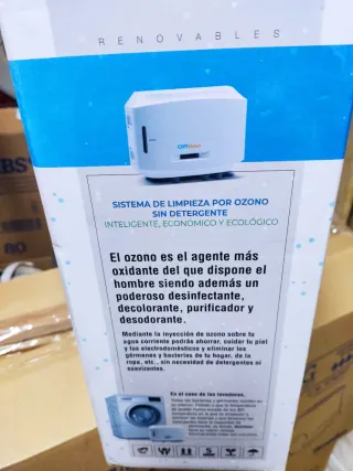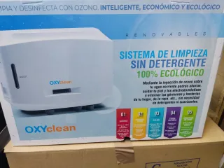 Sistema de limpieza OXYclean por ozono, sin necesidad de detergentes. Es una solución inteligente, económica y ecológica para el hogar. - El ozono es un potente agente oxidante. - Actúa como desinfectante, decolorante, purificador y desodorante. - Permite ahorrar agua y cuidar la piel. - Protege los electrodomésticos. - Elimina gérmenes y bacterias de tu hogar y ropa.