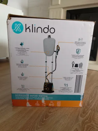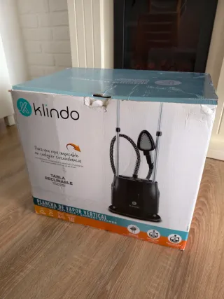 Plancha de vapor vertical Klindo para ropa. Ideal para alisar prendas. - 3 ajustes de inclinación: vertical, 45° y horizontal. - Vapor listo en 50 segundos. - 40 minutos de autonomía. - Depósito de agua extraíble de 1,5 L. - Caudal de vapor de 54 g/min. - Protección contra sobrecalentamiento. - Incluye 3 accesorios: cepillo, percha y guante. - Longitud del cable: 1,2 m. - 5 niveles de vapor ajustables.