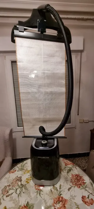 Plancha vertical para planchar cortinas ropa colgada. Trajes de novia etc. En buen estado deposito inferior de capacidad como el de la plancha de tabla sin cal. Ni agujeros atorados