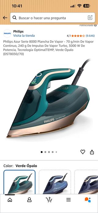 El precio mostrado es el de venta en nuestra tienda. El precio de este producto en nuestra página web puede ser diferente. Este artículo está disponible en nuestra tienda de Alcobendas y la Moraleja. plancha vapor philips azur CC040_E559577_0 es un objeto que se ofrece en estado muy bueno. Todos nuestros productos cuentan con garantía de 3 años y un plazo de devolución de 14 días. Tipo: Horizontal | Vapor regulable: Si | Varillas antical: No | Vaso medidor: No | Suelo de plancha: Ceramica | Funcion vapor vertical: Si | Informacion adicional: Revisar el estado de uso en las imágenes. | Potencia: 3000 | Modelo: Azur | Marca: P