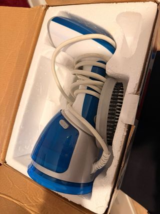 Se vende cepillo de vapor de mano, ideal para planchar cortinas o quitar arrugas rápidamente de camisas y vestidos directamente en la percha. • Estado: Como nueva, funciona perfectamente. • Ventajas: Muy ligera y cómoda para viajes o retoques rápidos de última hora sin sacar la tabla de planchar. • Incluye: Cabezal con cepillo desmontable para tejidos más gruesos. Calienta muy rápido y el depósito es fácil de rellenar. Entrega: Entrega en mano.