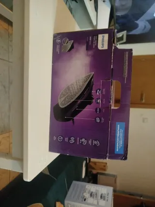 Plancha de vapor vertical Philips en perfecto estado. Ideal para alisar la ropa de forma rápida y eficiente. - Base estable y segura. - Manguera flexible para el vapor. - Diseño moderno y funcional.