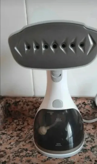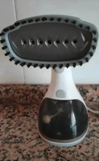 Plancha de vapor vertical en buen estado. Es perfecta para planchar ropa de forma rápida y eficiente. - Se entrega con percha. - Diseño vertical que ahorra espacio. - Incluye cepillo para tejidos delicados.