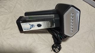 Plancha de vapor vertical Rolipo, ideal para eliminar arrugas rápidamente. Está en perfecto estado. - Diseño portátil y ligero. - Cabezal de acero inoxidable. - Vapor potente. - Calentamiento rápido (30 seg). - Depósito de agua de capacidad adecuada.