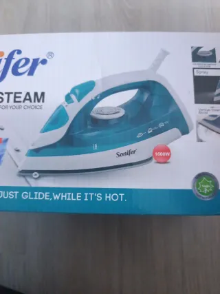 Plancha de vapor Sonifer con una potencia de 1600W. Diseñada para un planchado eficiente y cómodo. - Función spray. - Potente golpe de vapor vertical. - Base antiadherente para un deslizamiento suave.