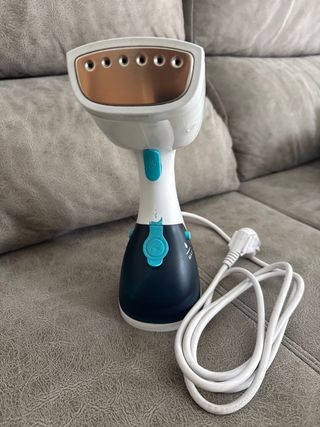Plancha vertical de vapor, ideal para alisar prendas de forma rápida y sencilla. - Diseño compacto y ergonómico. - Placa de vapor con múltiples orificios. - Mango con botón de activación. - Depósito de agua con indicador de nivel.
