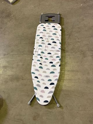 Tabla de planchar con diseño moderno y alegre. prácticamente nueva. - Plegable para fácil almacenamiento. - Estructura resistente. - Funda con estampado de círculos verdes y negros.