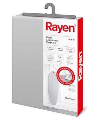 Funda para tabla de planchar Rayen, modelo Basic Aluminum EasyClip. - Diseño con 2 capas. - Sistema EasyClip para un ajuste sencillo. - Ajustable. - Superficie ultra reflectante. - Composición 100% algodón. Funda Tabla de Planchar Universal | Funda de Planchar Ajuste EasyClip | 2 capas: Espuma y tejido 100% Algodón | Calidad Aluminio | Gama Basic | Medida: 130 x 47 cm | Gris