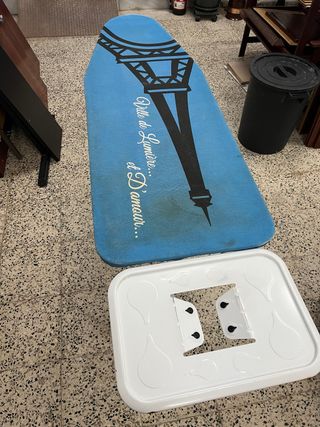 Vendo tabla de planchar de gama alta, mucho más amplia y estable que las convencionales. Perfecta para quienes buscan comodidad o tienen mucha colada. • Dimensiones: Superficie extra grande de 160 cm de largo y 45 cm de ancho (ideal para sábanas, manteles y cortinas). • Altura: Regulable hasta 80 cm, muy cómoda para la espalda. • Soporte reforzado: Incluye bandeja metálica grande, diseñada específicamente para apoyar centros de planchado o planchas de vapor pesadas. • Estado: Estructura muy robusta y patas con gomas antideslizantes. La funda tiene el desgaste normal del uso. 📍Recogida en Huelva Capital (Calle Santiago Apostol).