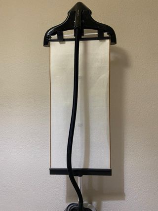 Plancha de vapor vertical Rowenta, en perfecto estado. - Ideal para planchar prendas delicadas. - Incluye percha y funda protectora. - Diseño compacto y fácil de usar.