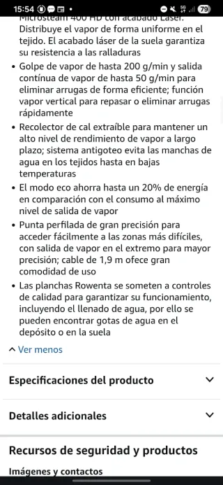 Plancha de vapor Rowenta Microsteam 400 HD con acabado láser. PRECIO NEGOCIABLE - Distribuye el vapor de forma uniforme. - El acabado láser de la suela garantiza resistencia a las ralladuras. - Golpe de vapor de hasta 200 g/min y salida continua de hasta 50 g/min. - Función de vapor vertical para repasar o eliminar arrugas rápidamente. - Recolector de cal extraíble para mantener un alto rendimiento de vapor. - Sistema antigoteo que evita manchas de agua en los tejidos. - Modo eco que ahorra hasta un 20% de energía. - Punta de gran precisión para zonas difíciles. - Cable de 1,9 m para mayor comodidad.