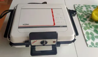 Plancha de asar eléctrica Solac Sanisima. - En perfecto estado. - Superficie antiadherente. - Posibilidad de guardarla en vertical para ahorrar espacio. - Termostato regulable. - Asas ergonómicas. - Potencia 2000 W. Utilizada solo una vez. Después se guardó en la caja. Funciona perfectamente.